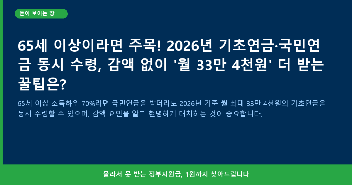 #기초연금 #국민연금 #동시수령 #기초연금감액 #2026년기초연금 #65세이상연금 #노후생활비 #연금신청 #연금수급자격 #어르신연금 #노후준비 #생활경제 #돈이보이는창 #복지로 #국민연금공단 #노령연금 #은퇴설계 #경제팁 #정부지원금 #내돈지키기